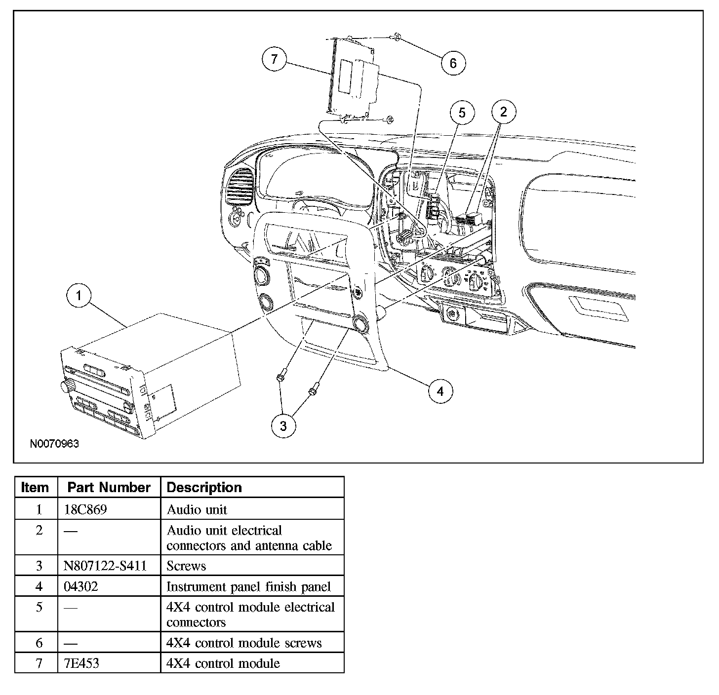 3. Disconnect the audio unit electrical connector(s) and antenna cable.