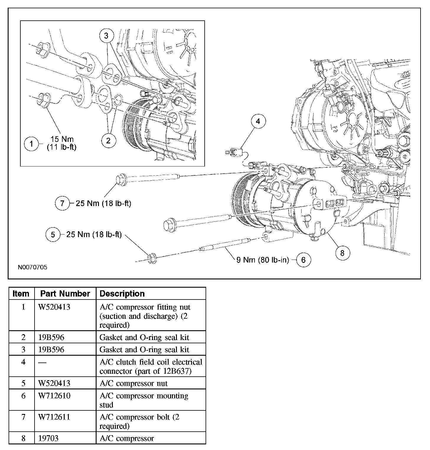 - If installing a new A/C compressor, the A/C clutch disc and hub, A/C compressor pulley and A/C clutch field coil must be inspected and transferred from the old unit to the new unit if suitable for reuse.