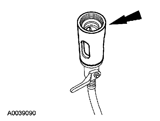 1. Drill one 12.7 mm (1/2 in) hole in the old suction accumulator or receiver/drier cylinder and drain the oil into a clean measuring cup.