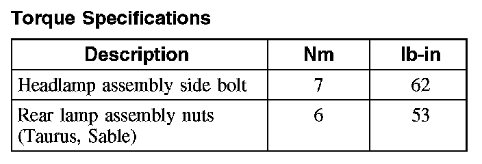 Torque Specifications: