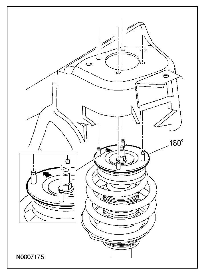 3. CAUTION: Do not rotate the strut mount to any other position than 180 degree from its original position, the arrow (located on top of the strut mount) must either point to the 3 o'clock or the 9 o'clock position.