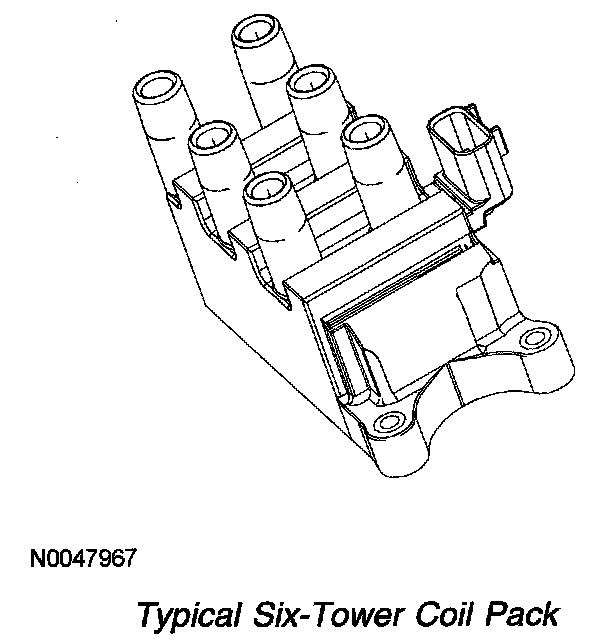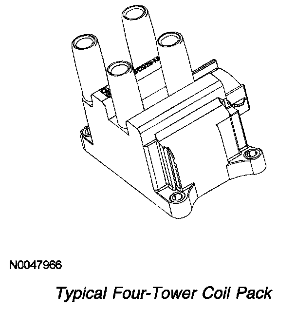 When the coil is fired by the PCM, spark is delivered through the matched pair towers to their respective spark plugs. The spark plugs are fired simultaneously and are paired so that as one fires on the compression stroke, the other spark plug fires on the exhaust stroke. The next time the coil is fired, the situation is reversed. The next pair of spark plugs fire according to the engine firing order.