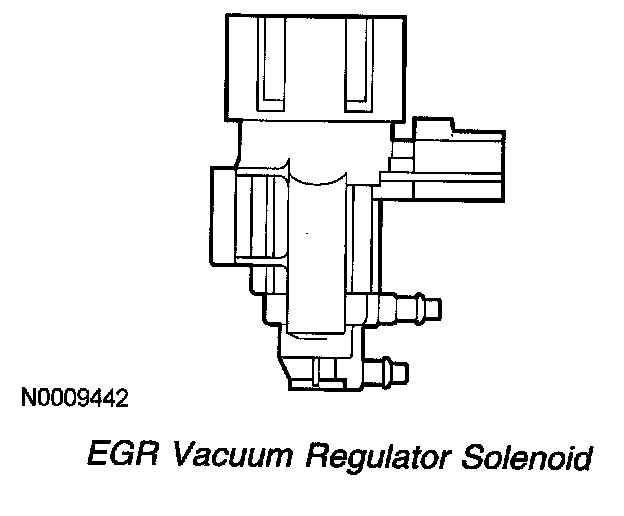 The EGR vacuum regulator solenoid is an electromagnetic device used to regulate the vacuum supply to the EGR valve. The solenoid contains a coil which magnetically controls the position of a disc to regulate the vacuum. As the duty cycle to the coil increases, the vacuum signal passed through the solenoid to the EGR valve also increases. Vacuum not directed to the EGR valve is vented through the solenoid vent to atmosphere. Note that at 0% duty cycle (no electrical signal applied), the EGR vacuum regulator solenoid allows some vacuum to pass, but not enough to open the EGR valve.