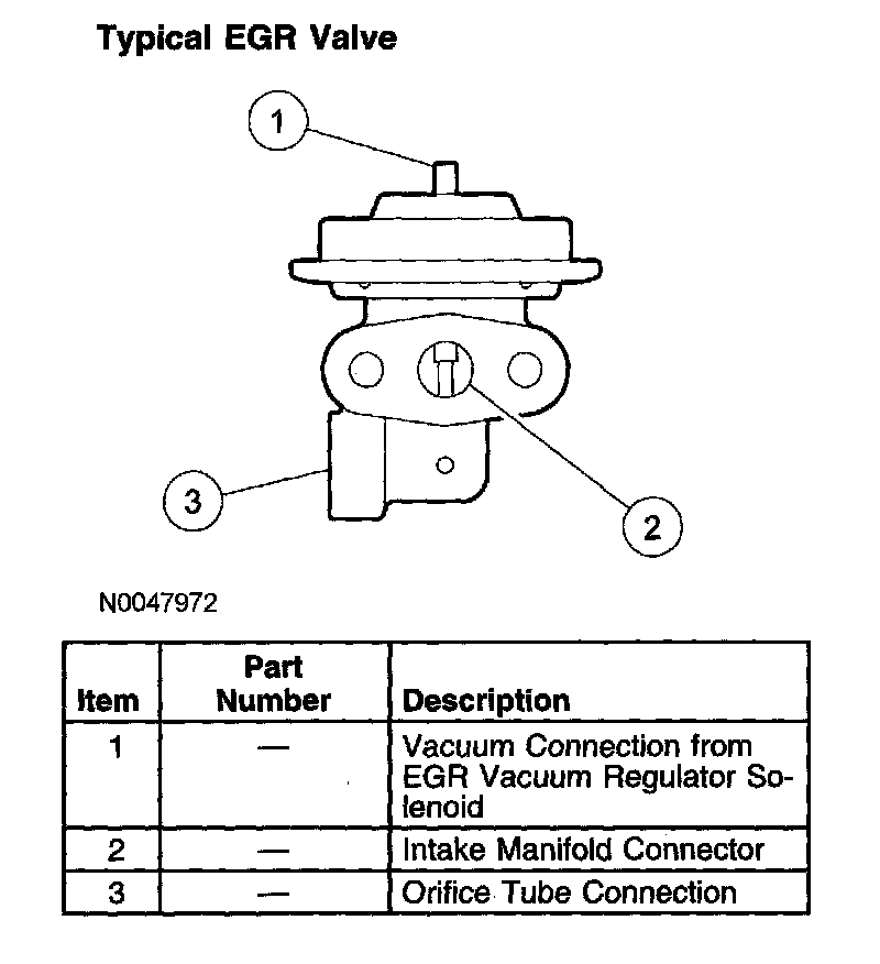 The orifice tube assembly is a section of tubing connecting the exhaust system to the intake manifold. The assembly provides the flow path for the EGR to the intake manifold and also contains the metering orifice and 2 pressure pick-up tubes. The internal metering orifice creates a measurable pressure drop across it as the EGR valve opens and closes. This pressure differential across the orifice is picked up by the differential pressure feedback EGR sensor which provides feedback to the PCM.