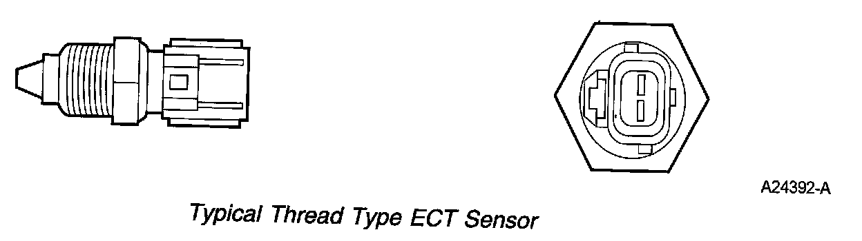 The ECT measures the temperature of the engine coolant. The PCM uses the ECT input for fuel control and for cooling fan control. There are 3 types of ECT sensors, threaded, push-in, and twist-lock. The ECT sensor is located in an engine coolant passage.