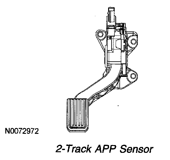 The APP sensor is an input to the powertrain control module (PCM) and is used to determine the amount of torque requested by the operator. Depending on the application either a 2-track or 3-track APP sensor is used.