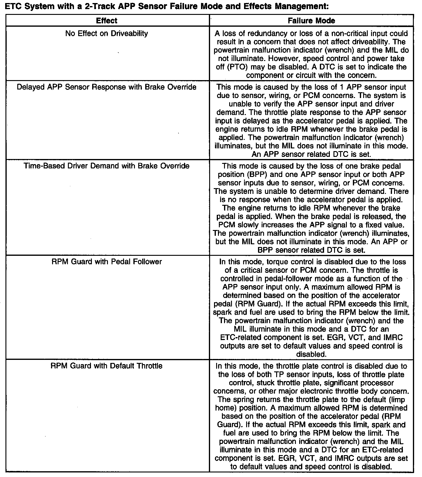 ETC System With A 2-Track APP Sensor Failure Mode And Effects Management: