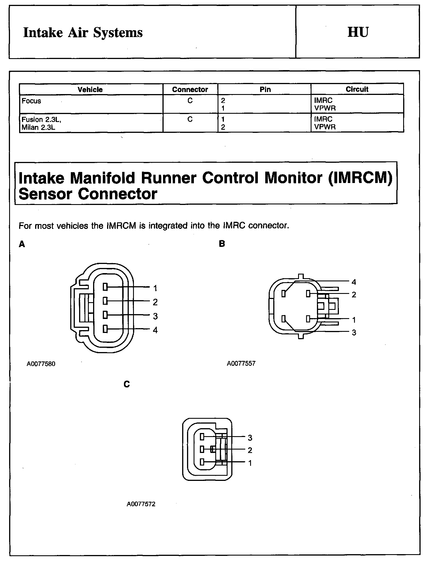 Intake Manifold Runner Control (IMRC) Actuator Connector And Intake Manifold Runner Control Monitor (IMRCM) Sensor Connector: