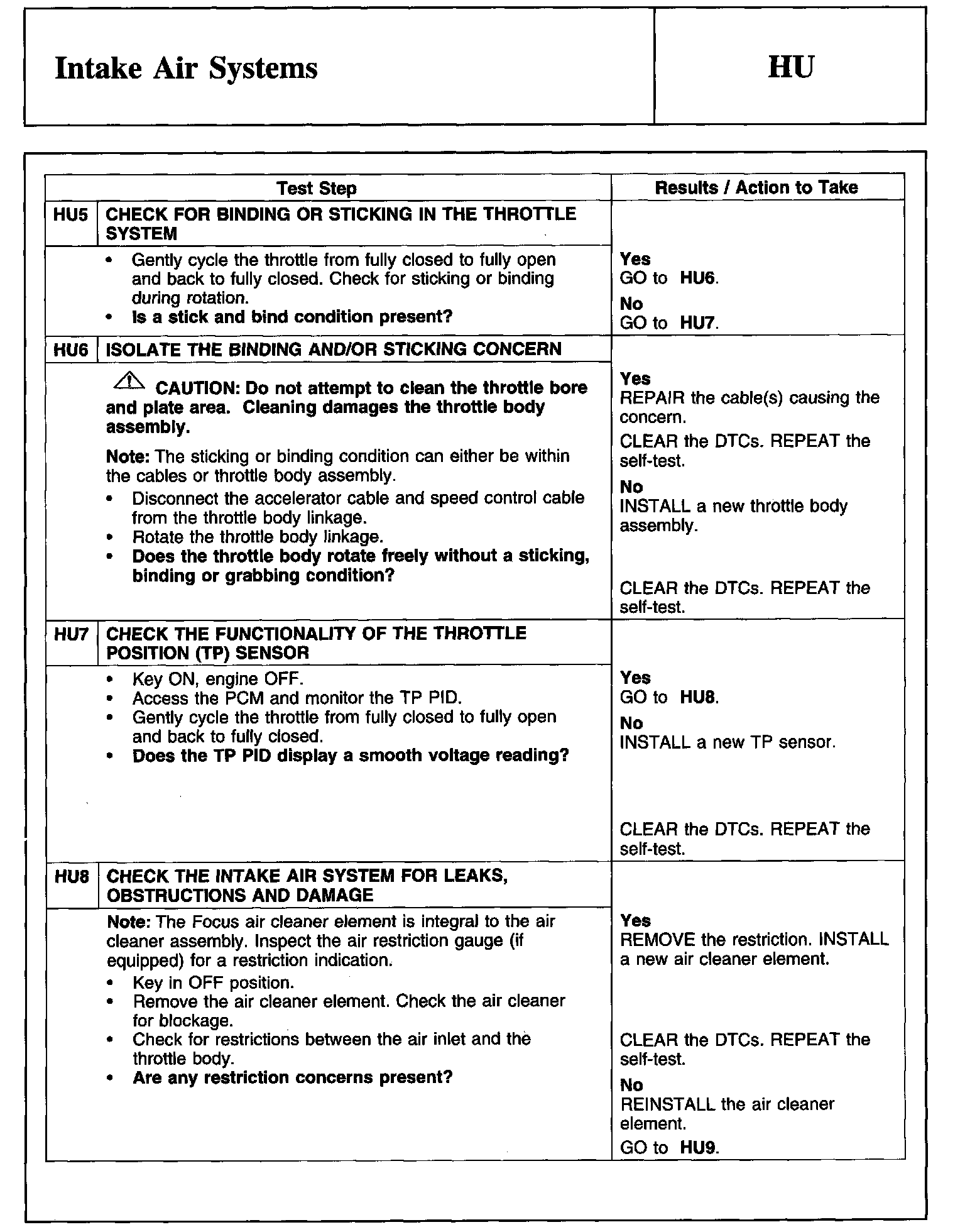 Tests HU: Intake Air System