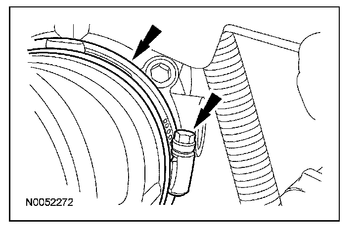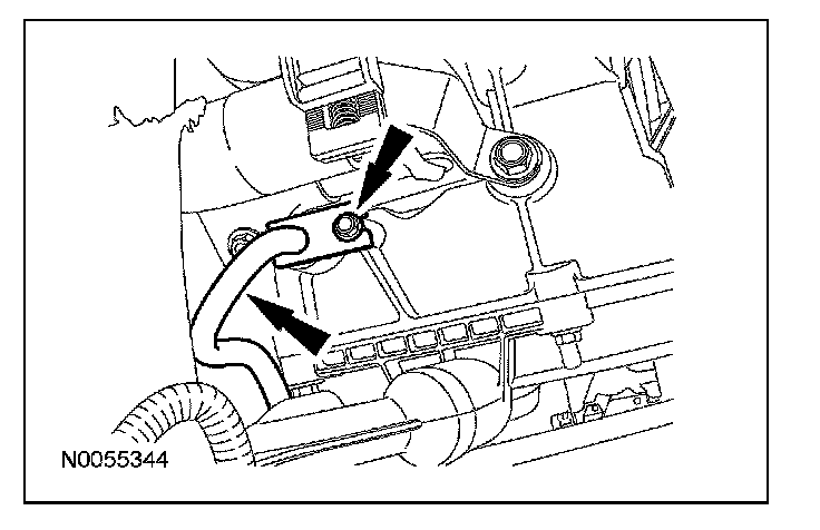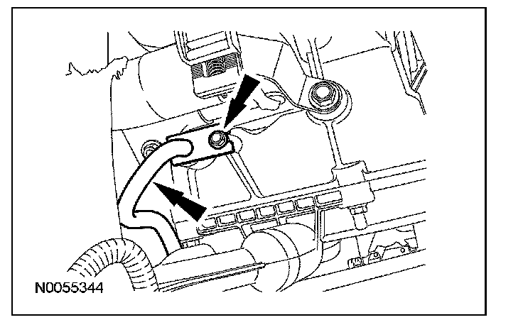 14. Remove and discard the transmission fluid cooler tube bolt and remove the transmission fluid cooler tube.