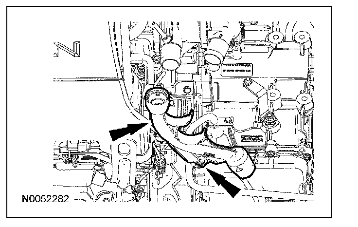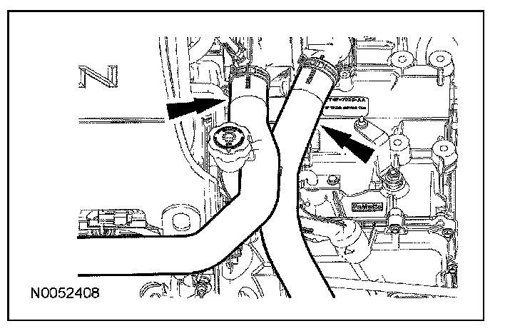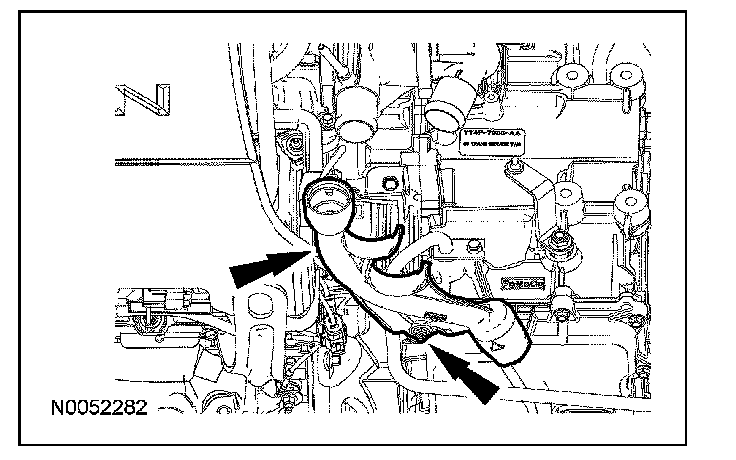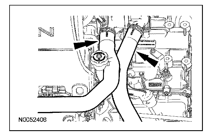 8. Remove the coolant hoses from the transmission fluid filler tube.