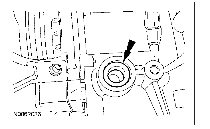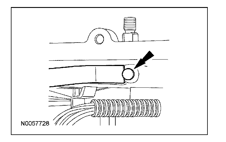15. Inspect the transaxle case to make sure that the transmission fluid cooler tube seal and backing ring were removed with the transmission fluid cooler tube and are not stuck in the transaxle case. If the transmission fluid cooler tube seal or backing ring are stuck in the transaxle case, remove the seal and backing ring.