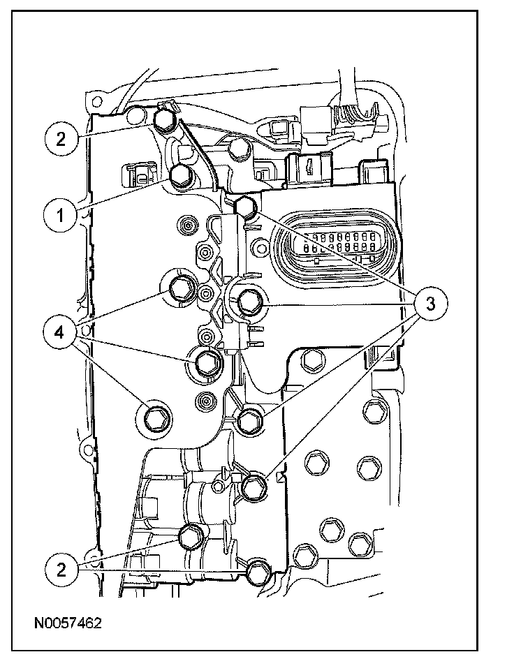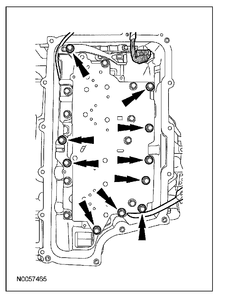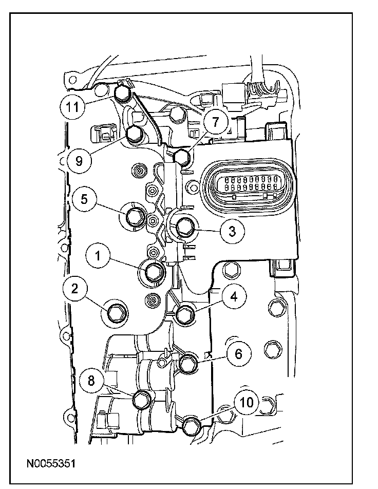 8. Tighten the solenoid body bolts in the sequence shown.