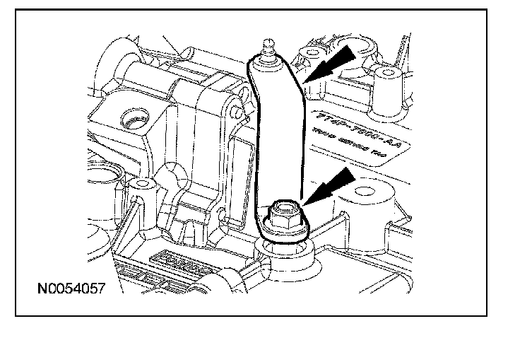 10. Remove the nut, rotate the transmission fluid filler tube counterclockwise 90 degrees and remove the transmission fluid filler tube.