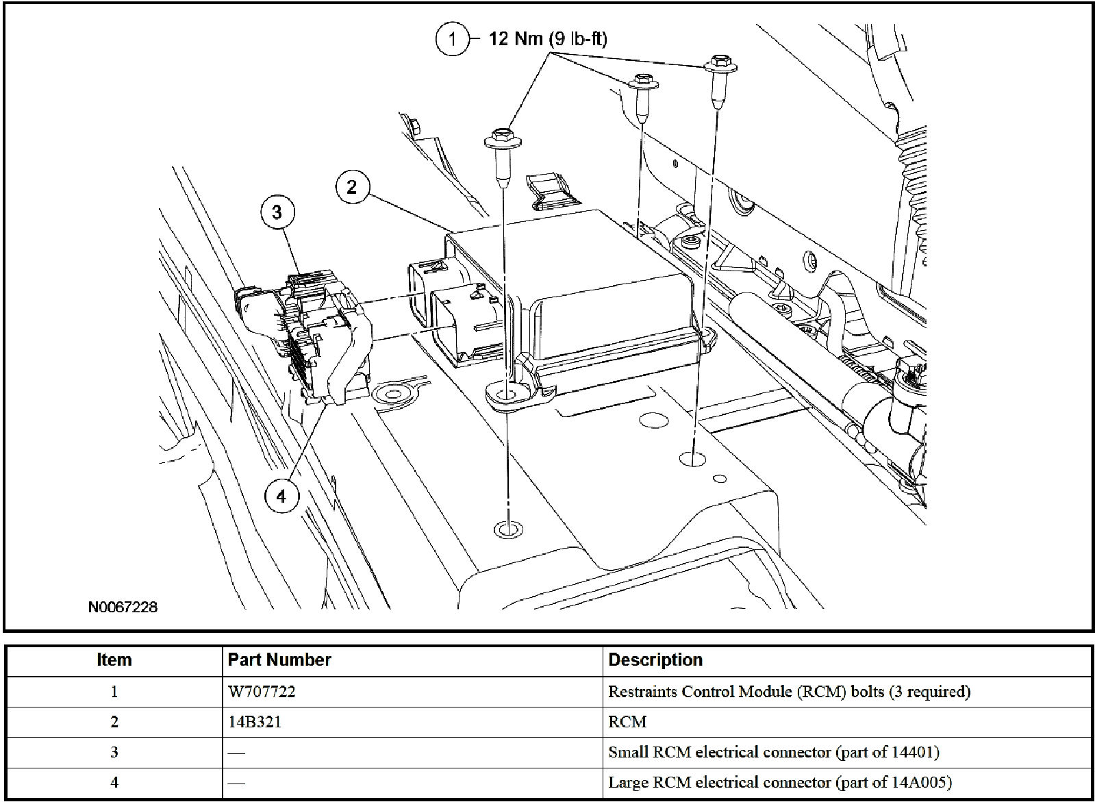 NOTE: When installing a new RCM always make sure the correct RCM is being installed. If an incorrect RCM is installed, DTCs will be set.