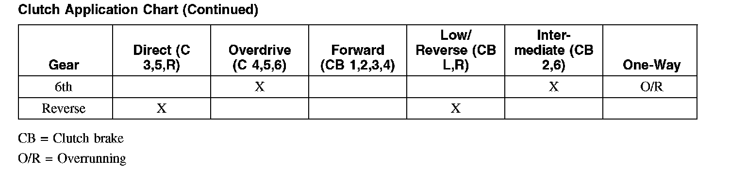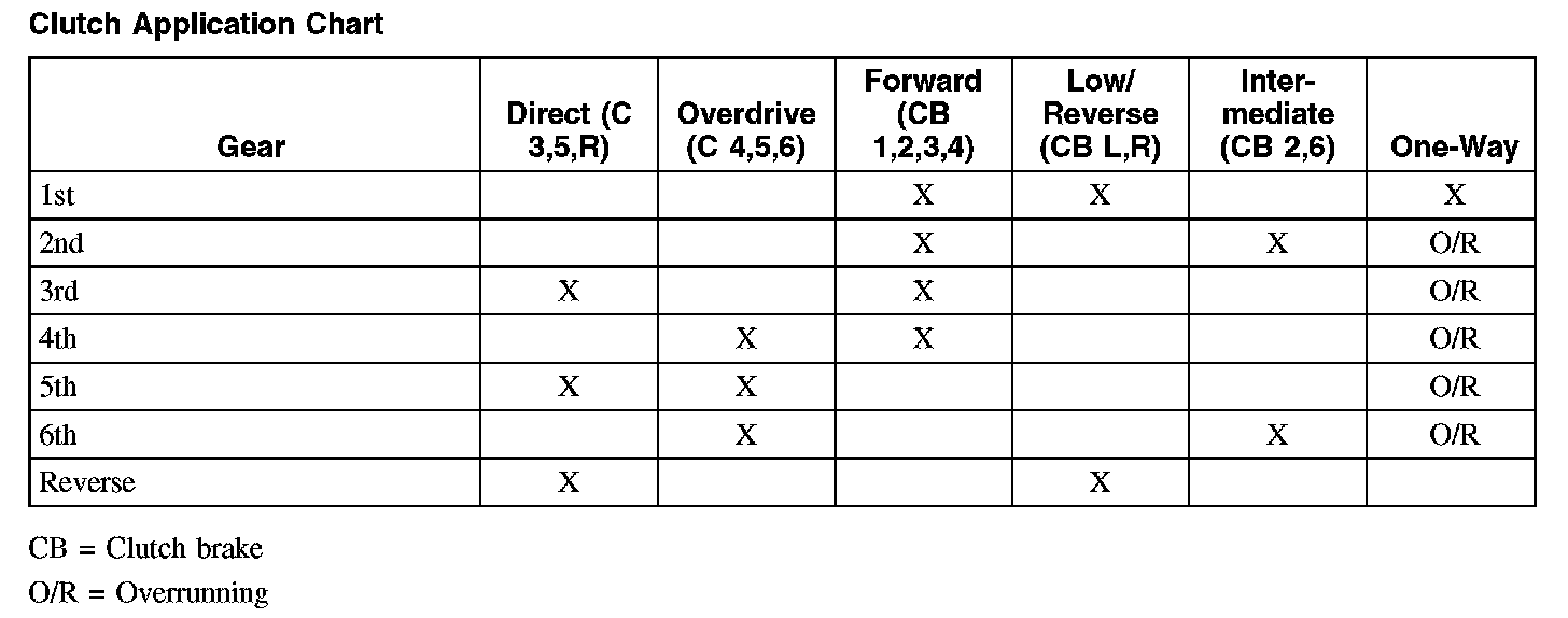 Clutch Application Chart: