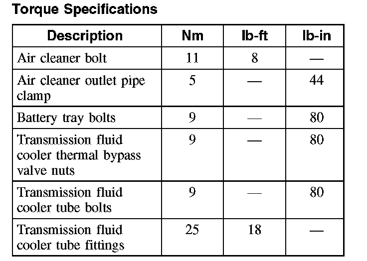 Torque Specifications
