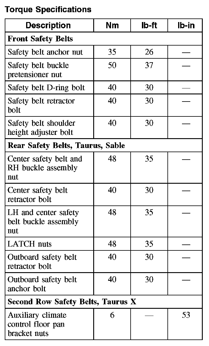 Torque Specifications (Part 1):