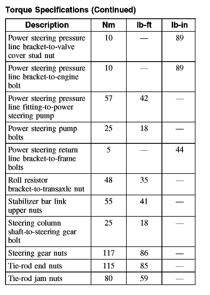 Torque Specifications