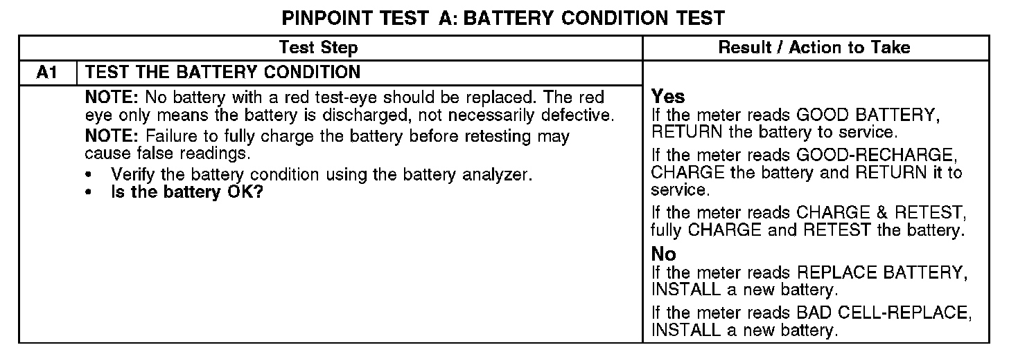 PINPOINT TEST A: BATTERY CONDITION TEST