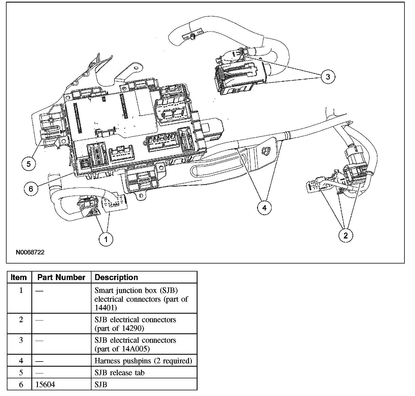 - If the smart junction box (SJB) is dropped, damage to the internal components may occur. A new SJB must be installed.