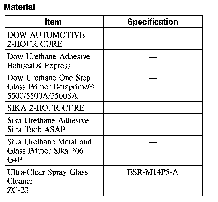 - Be sure to use the same brand and cure-rate products for the adhesive and primer. Do not mix different brands of urethane and primer. Refer to the Material Chart in this procedure.