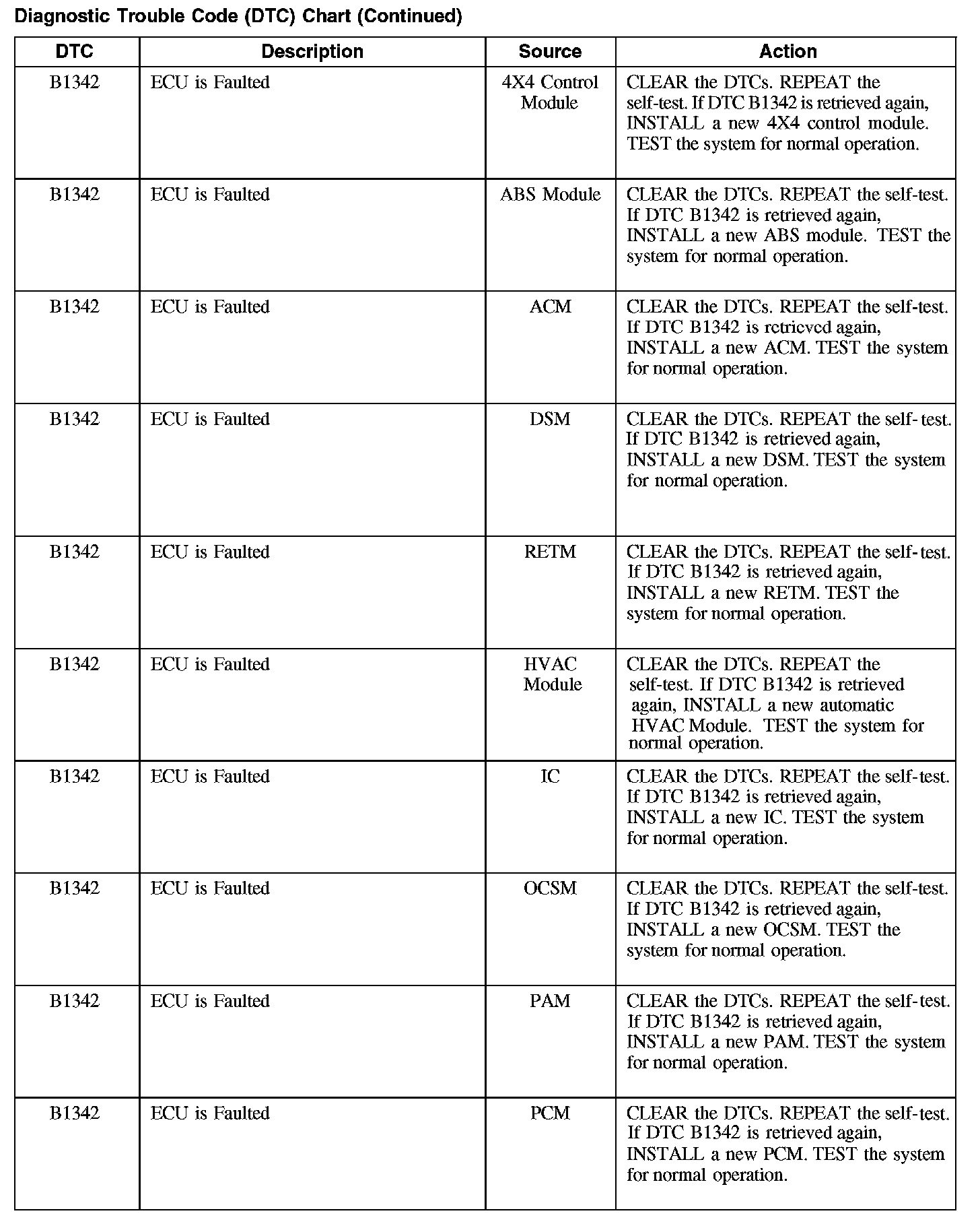 Diagnostic Trouble Code (DTC) Chart