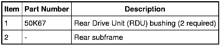 NOTE: There are 2 Rear Drive Unit (RDU) front bushings in the rear subframe, this procedure shows how to remove one bushing. The procedure for the remaining RDU bushing is identical.