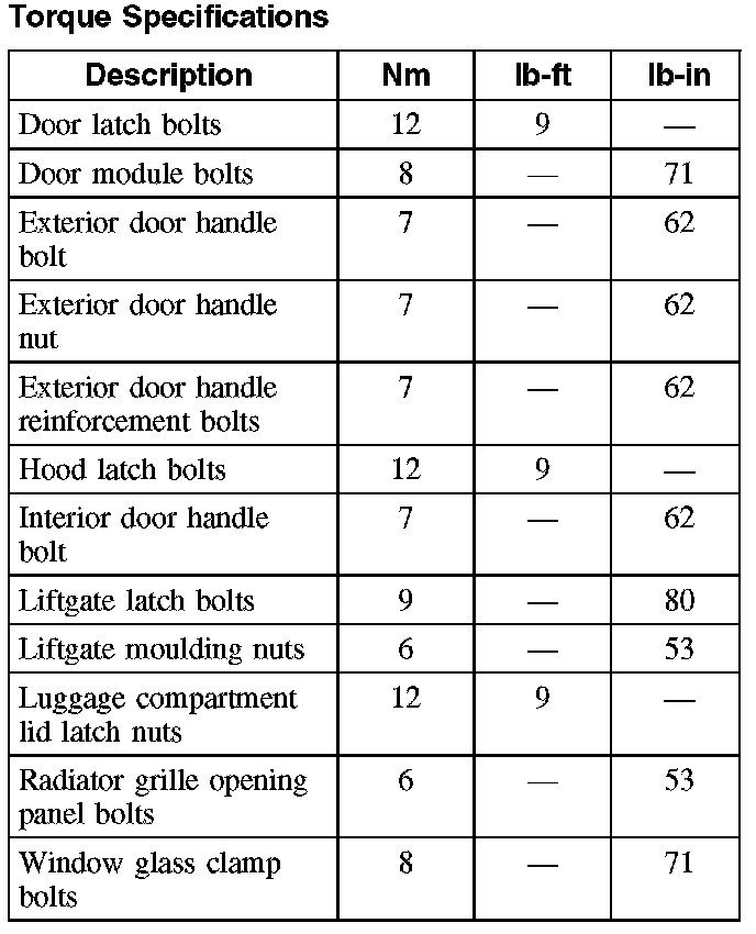 Torque Specifications: