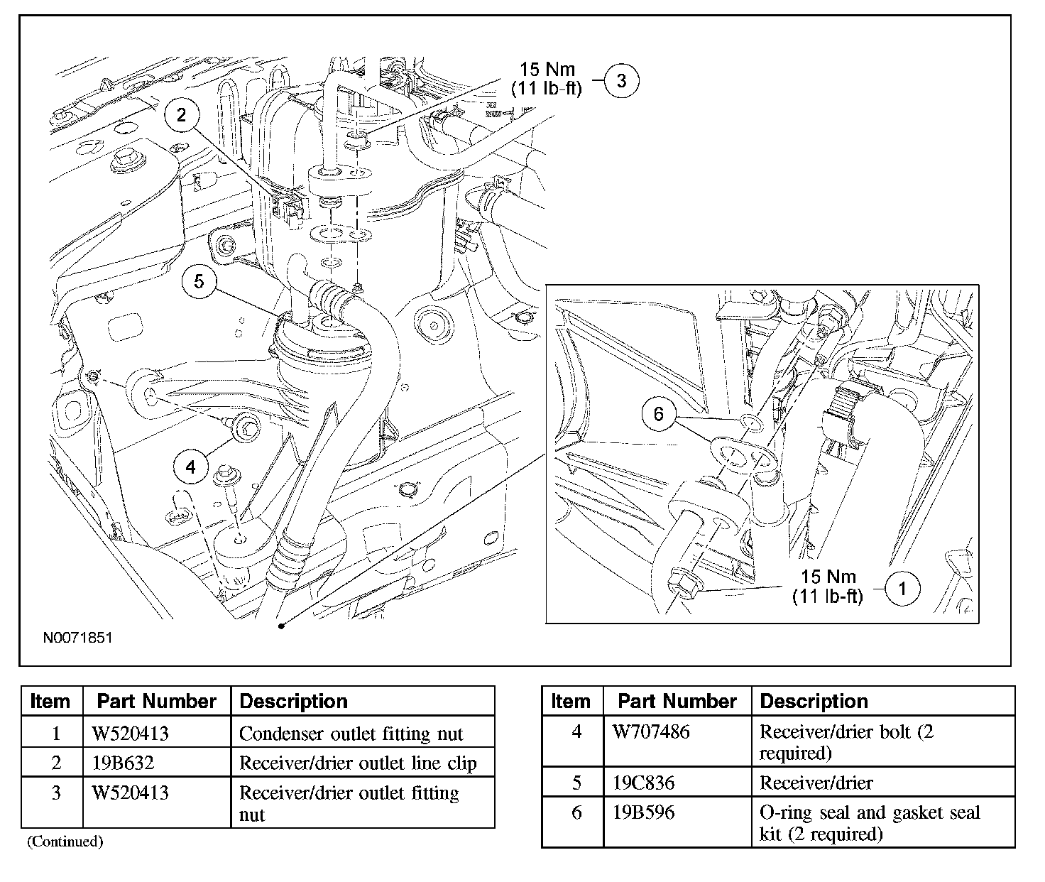 4. Remove the receiver/drier outlet fitting nut and disconnect the fitting.