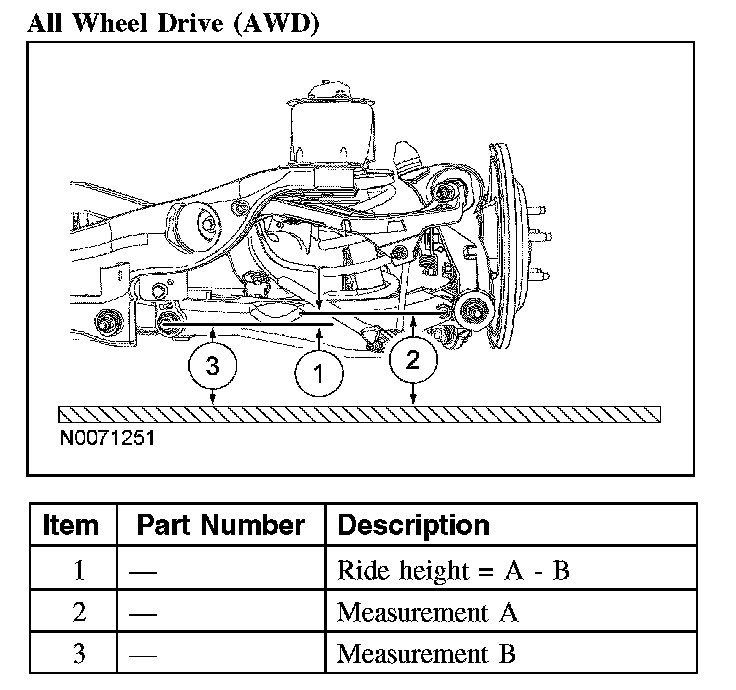 3. Subtract measurement B from measurement to obtain the rear ride height.