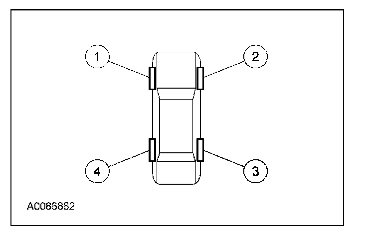 NOTE: The tire pressure sensor training procedure must be done on a single vehicle, in an area without radio frequency noise and at least 1 m (3 ft) away from other vehicles equipped with tire pressure monitoring system (TPMS).