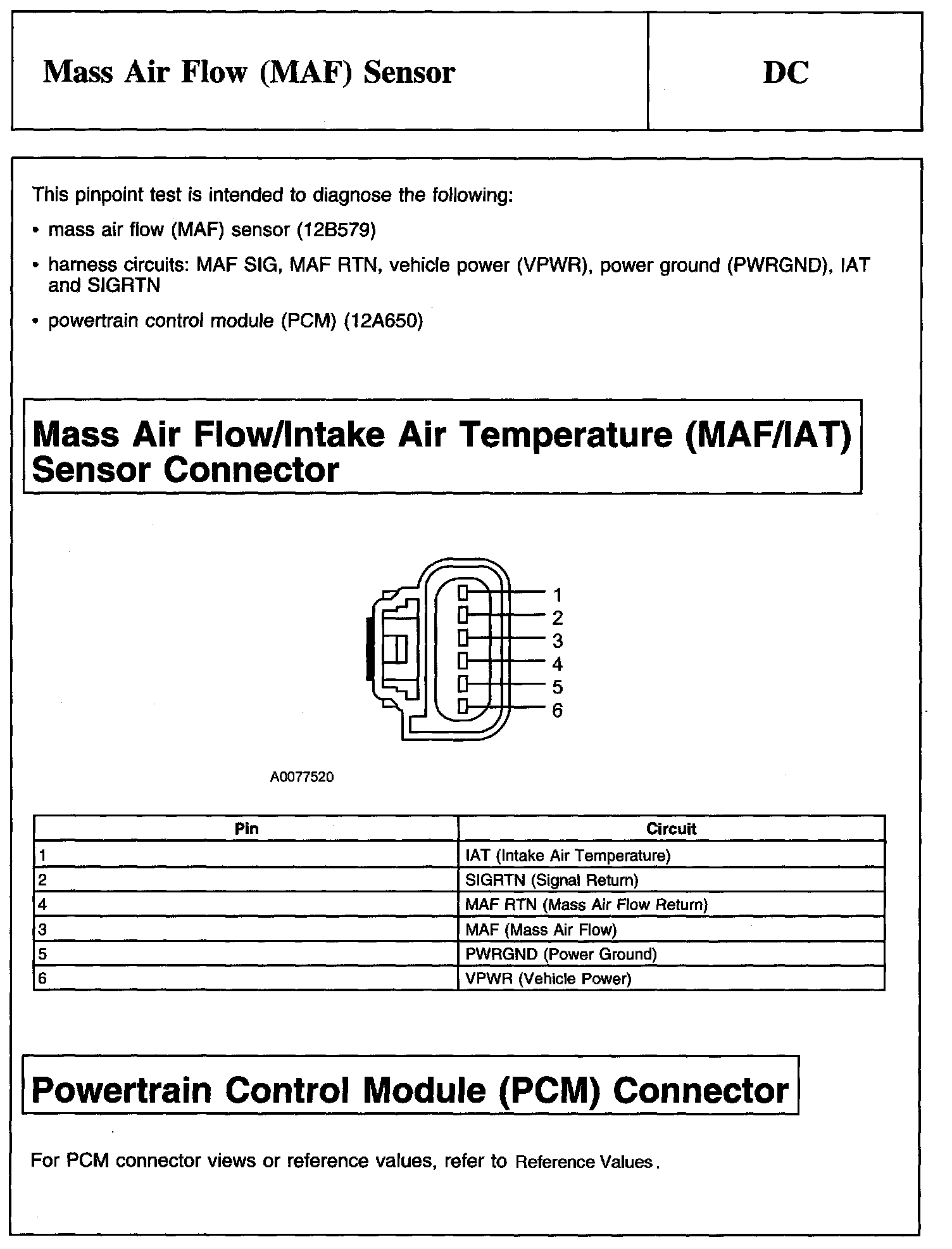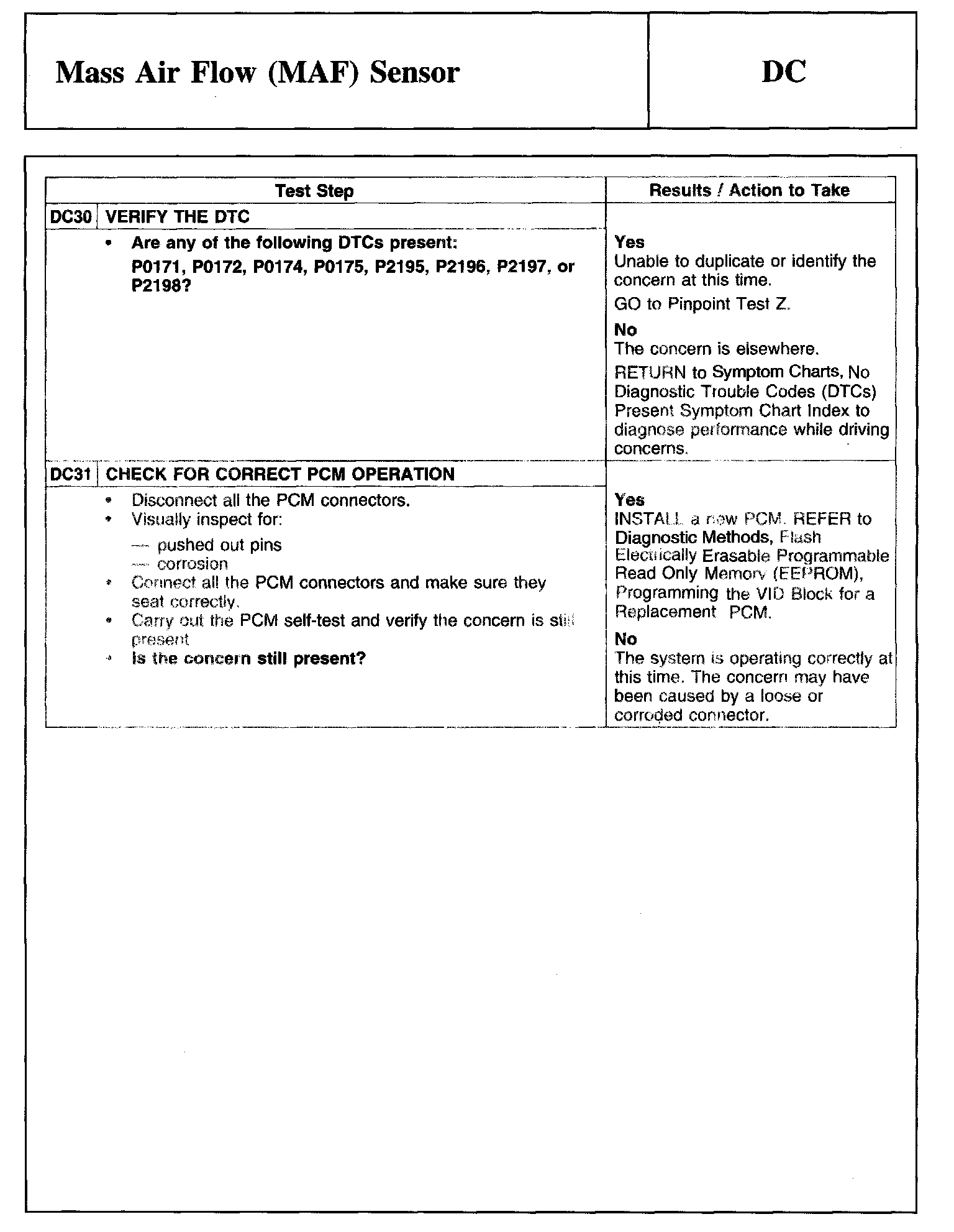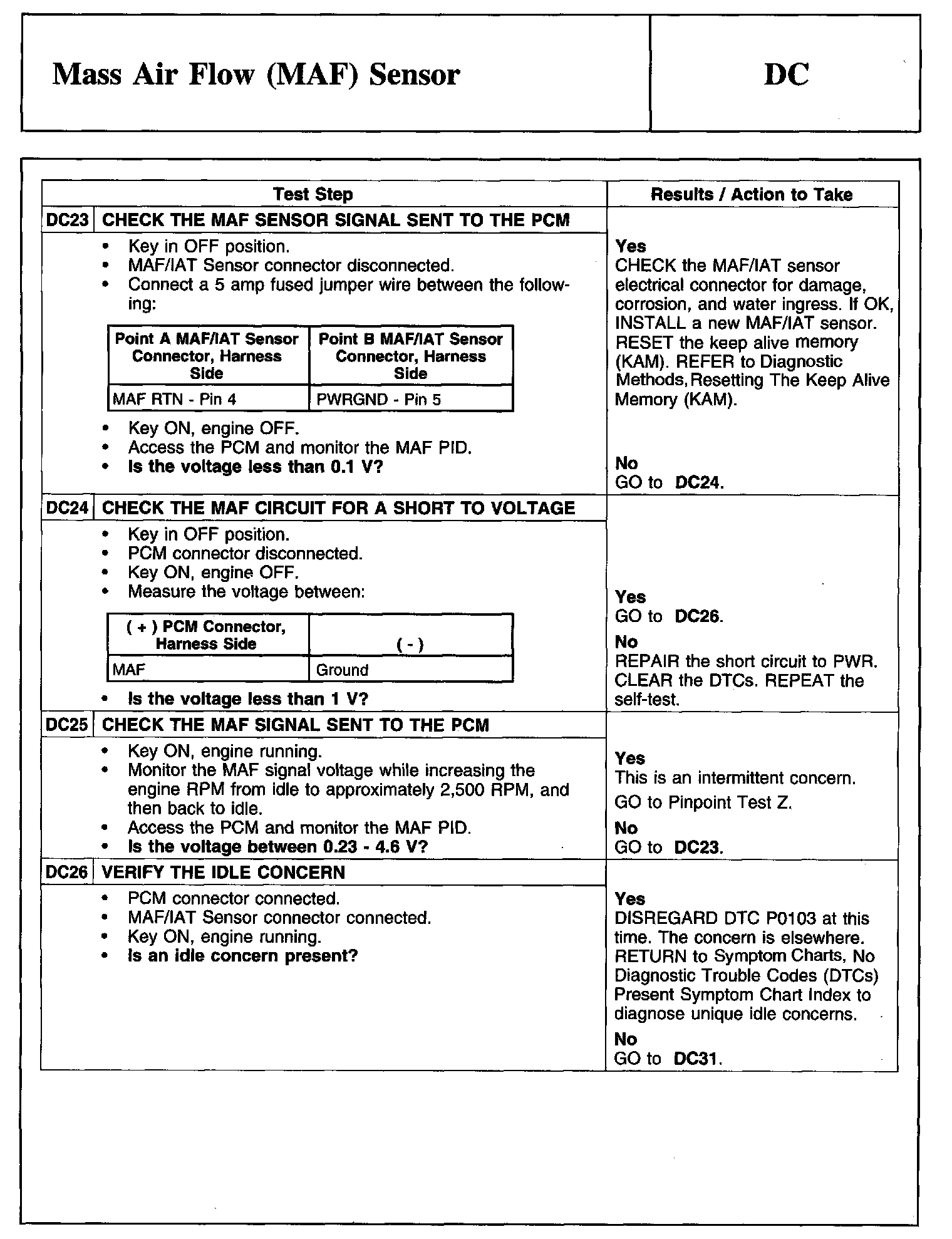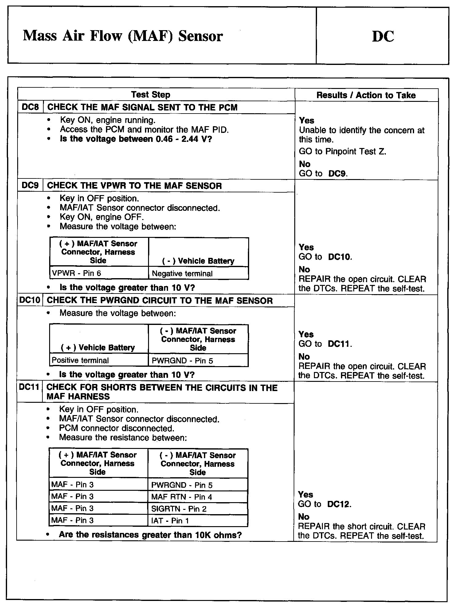 PINPOINT TEST DC: MASS AIR FLOW (MAF) SENSOR