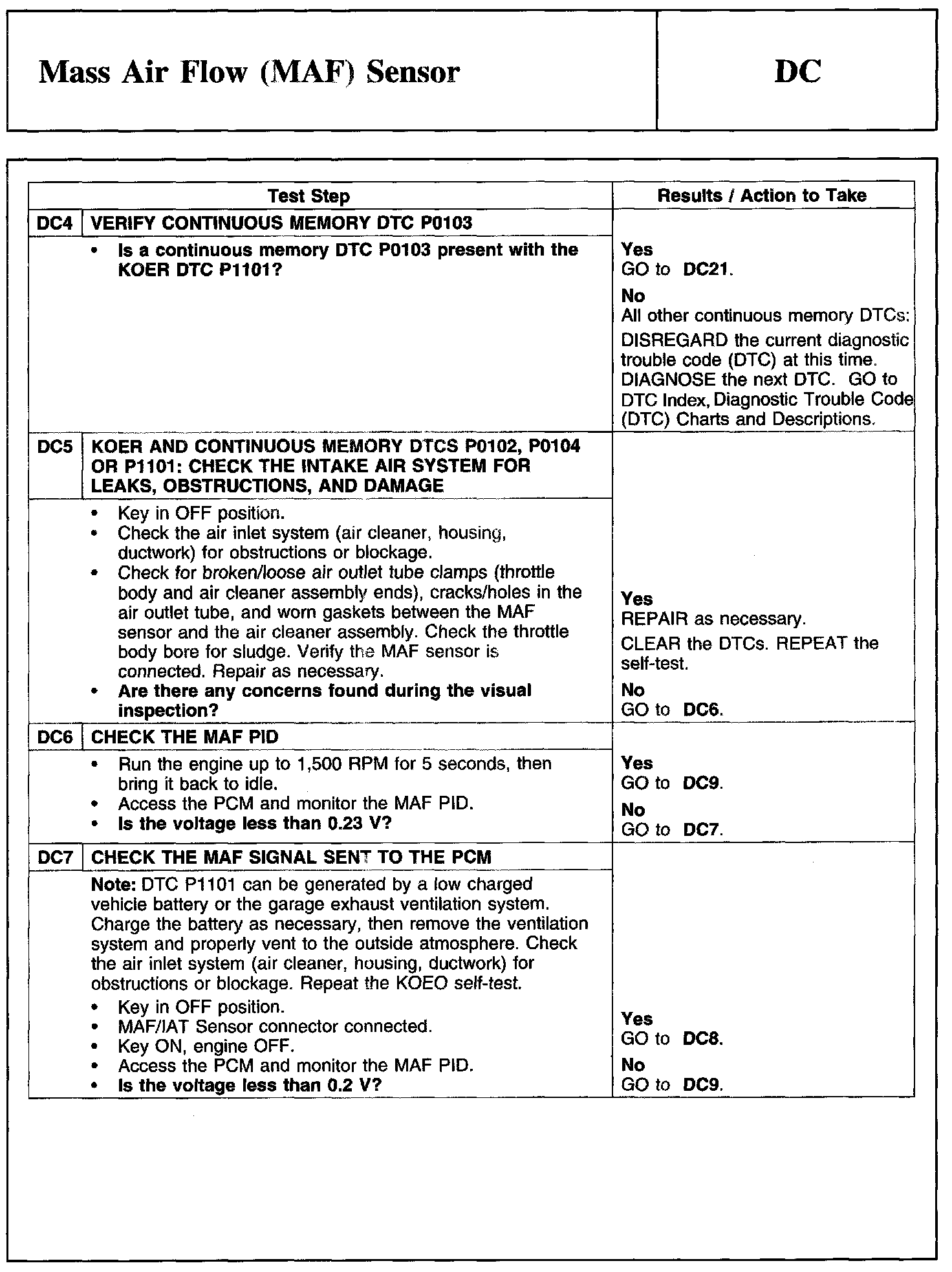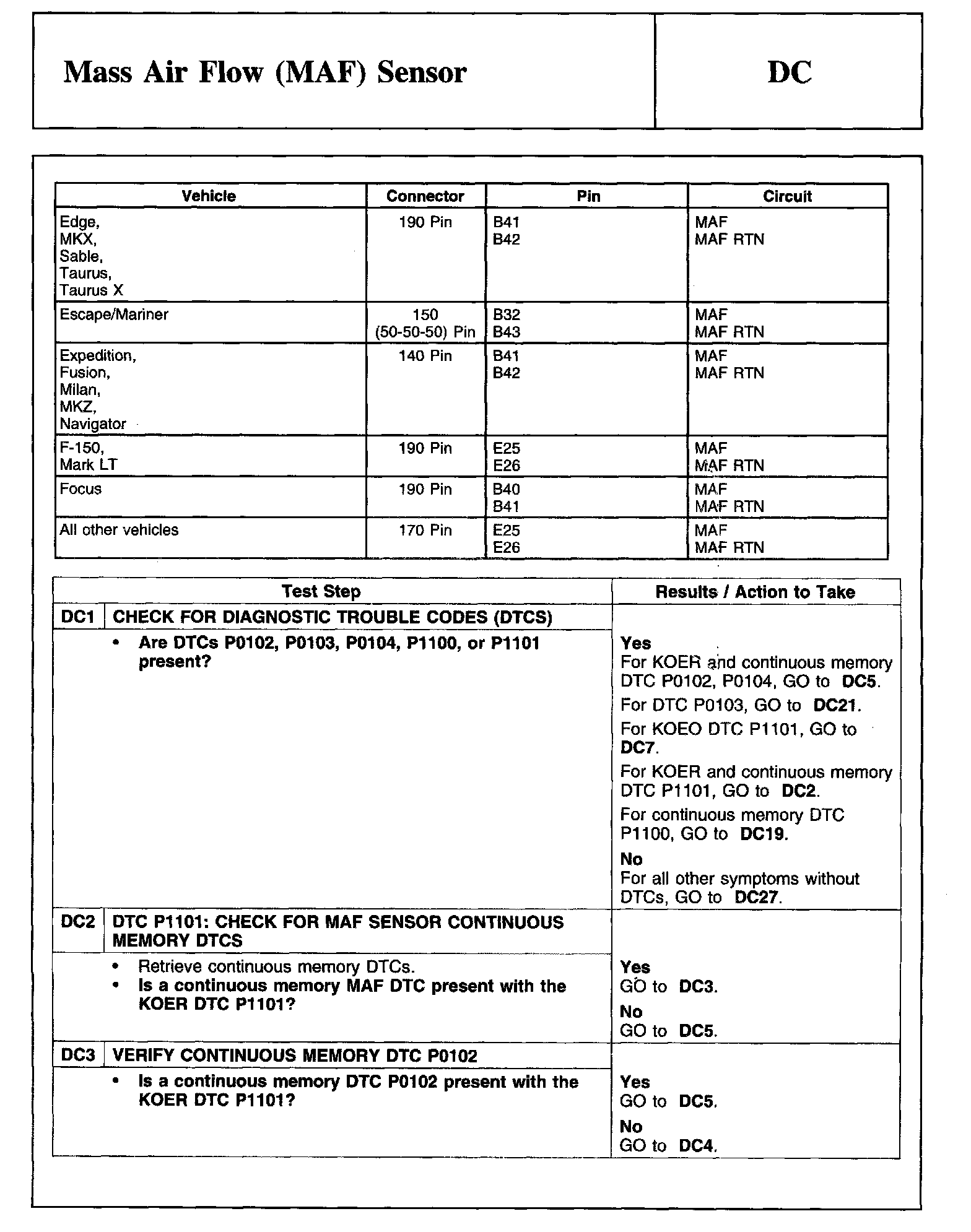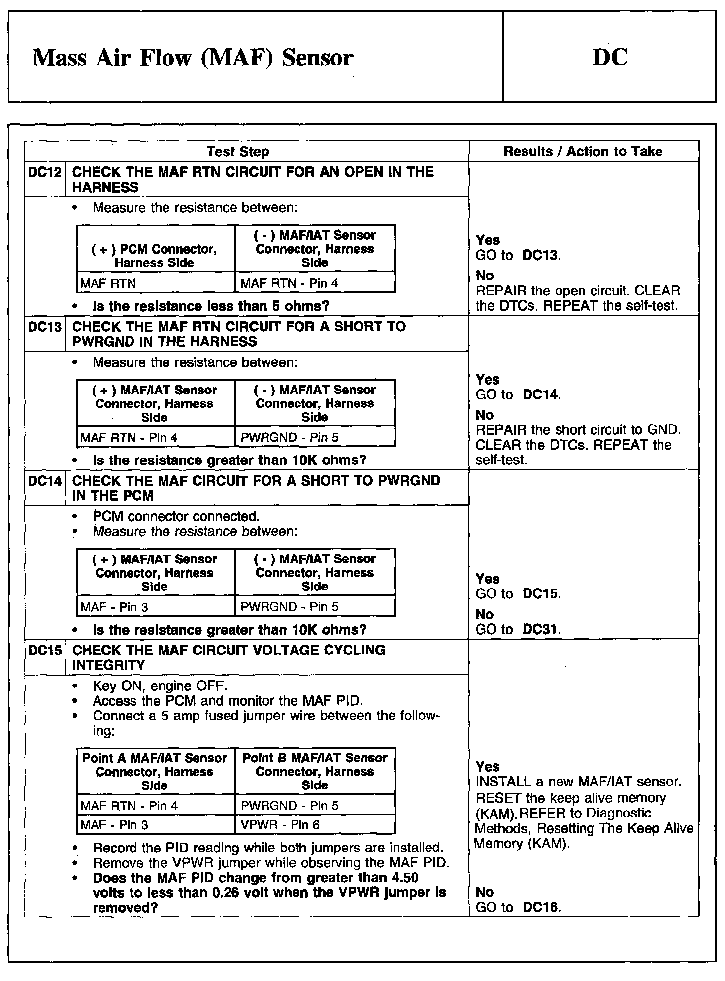 Tests DC: Mass Air Flow (MAF) Sensor