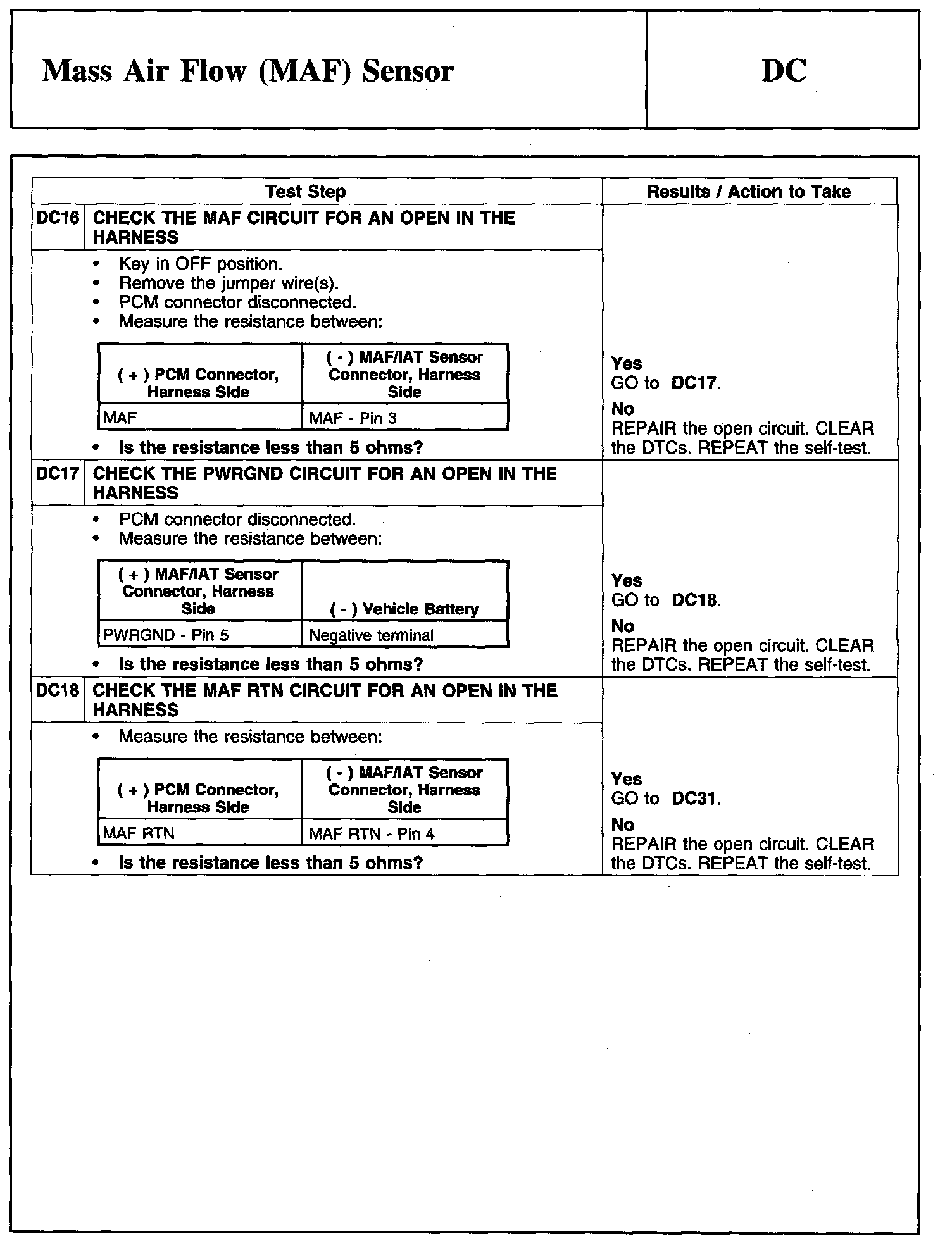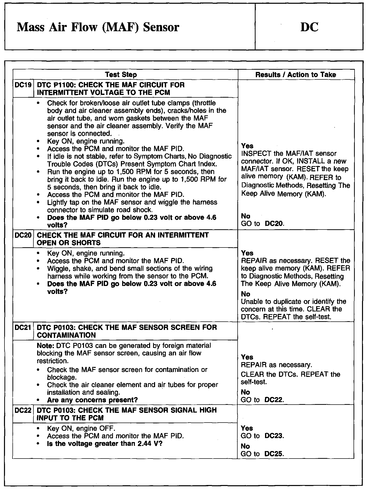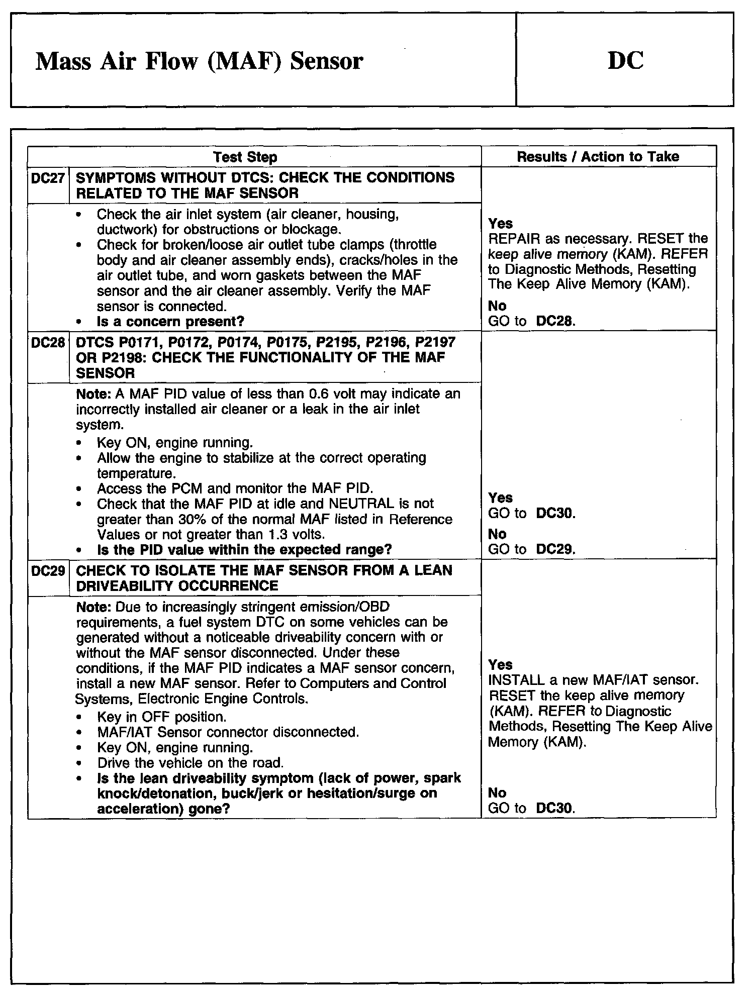 Tests DC: Mass Air Flow (MAF) Sensor