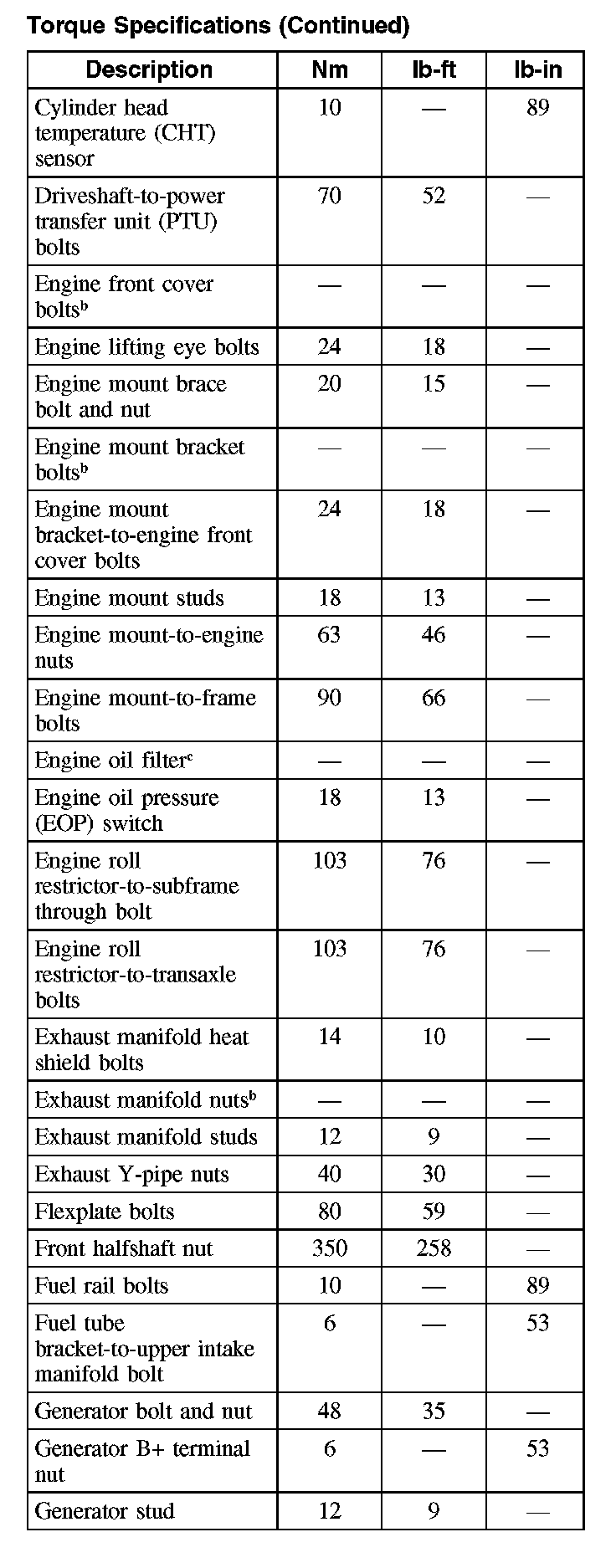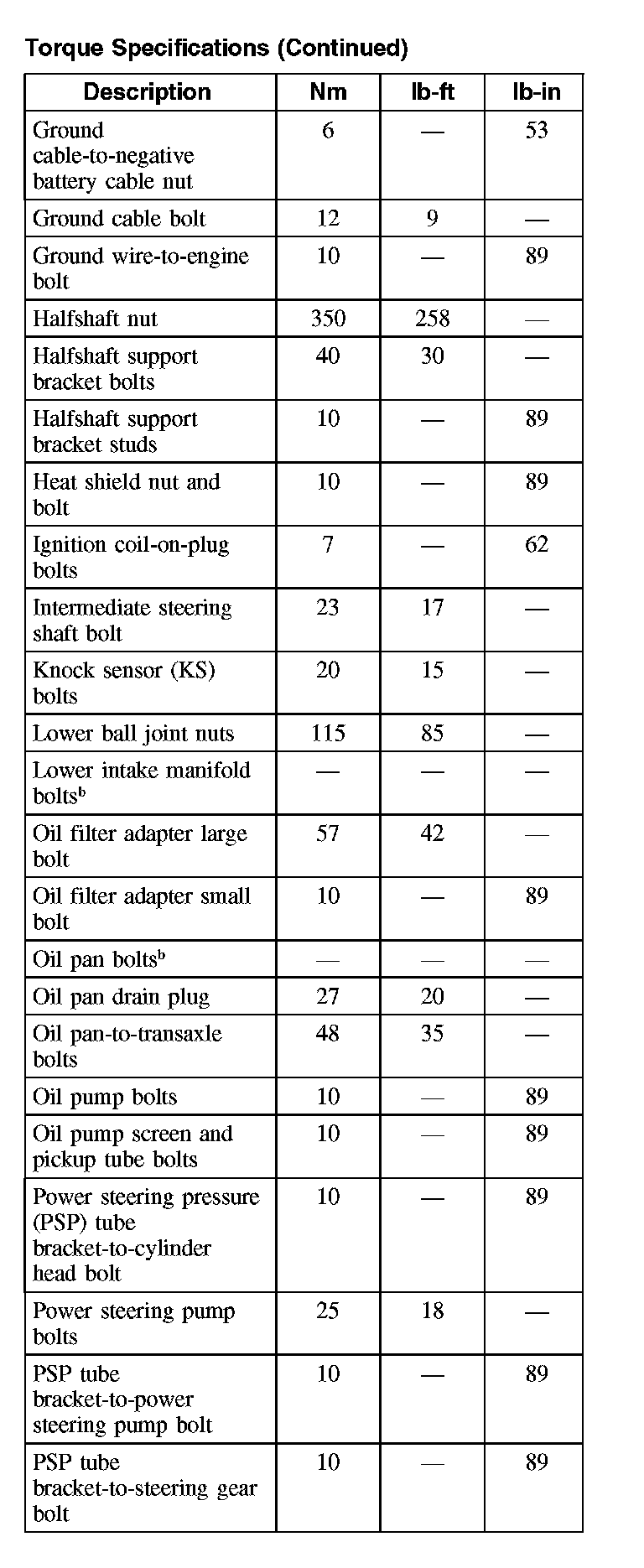 Torque Specifications