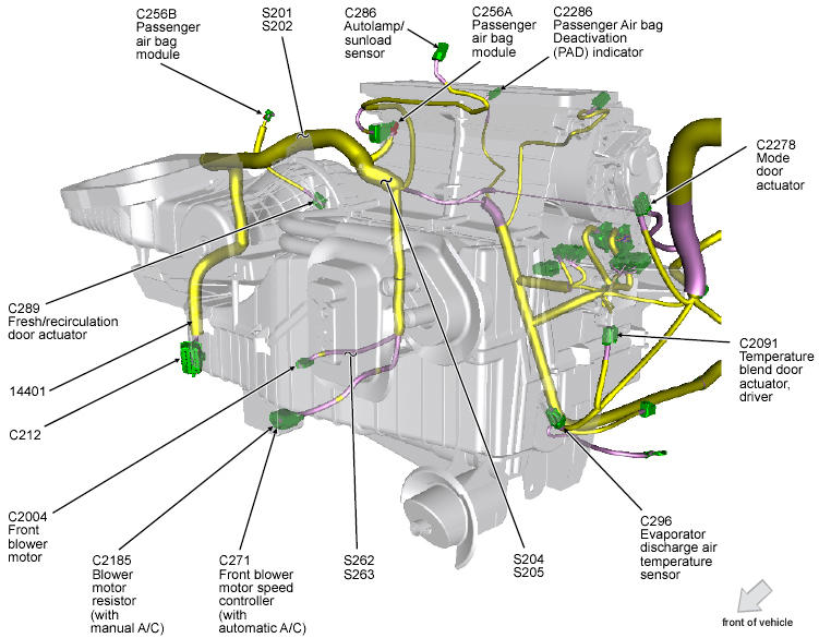 Front Blower Motor Speed Controller Lower right side of HVAC unit. See Figure.