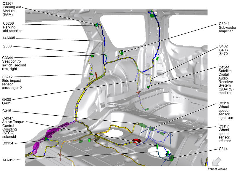 Parking Aid Module (PAM) (Taurus X) Top of right "C" pillar. See Figure.
