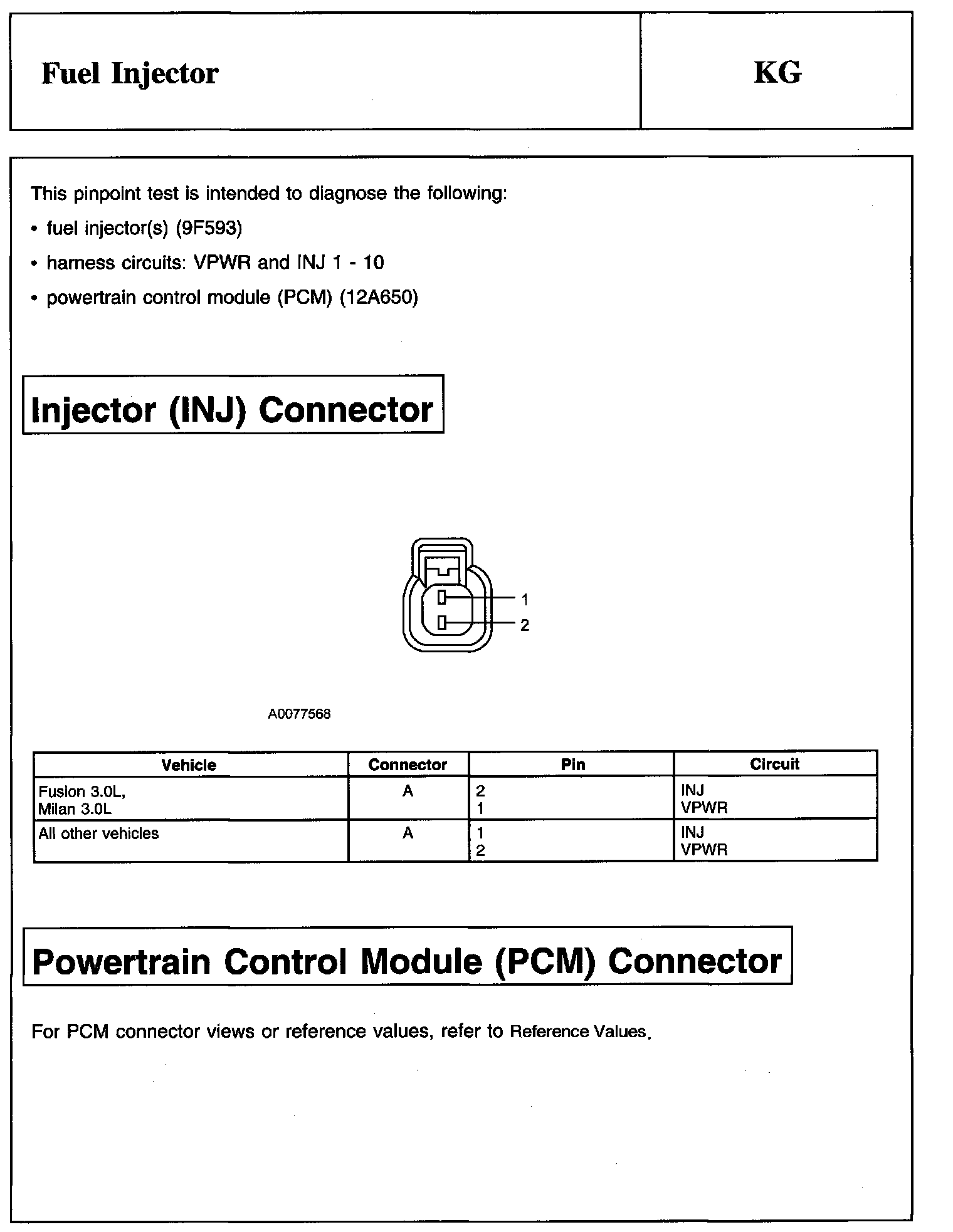 Description, Injector (INJ) Connector And Powertrain Control Module (PCM) Connector: