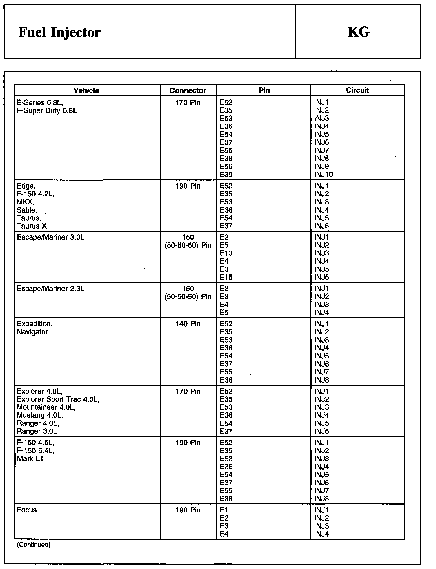 Powertrain Control Module (PCM) Connector Continued: