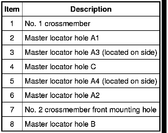 2. No. 2 crossmember locating hole.