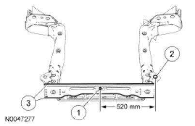 2. The distance between the left and right front body mount to the master locator hole is 520 mm (20.47 in) ± 3 mm (0.11 in).
