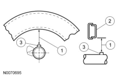 1. Measure the distance between the inner frame reinforcement (Item 2) and the rear axle jounce stop (Item 3) to obtain the rear ride height (Item 1).