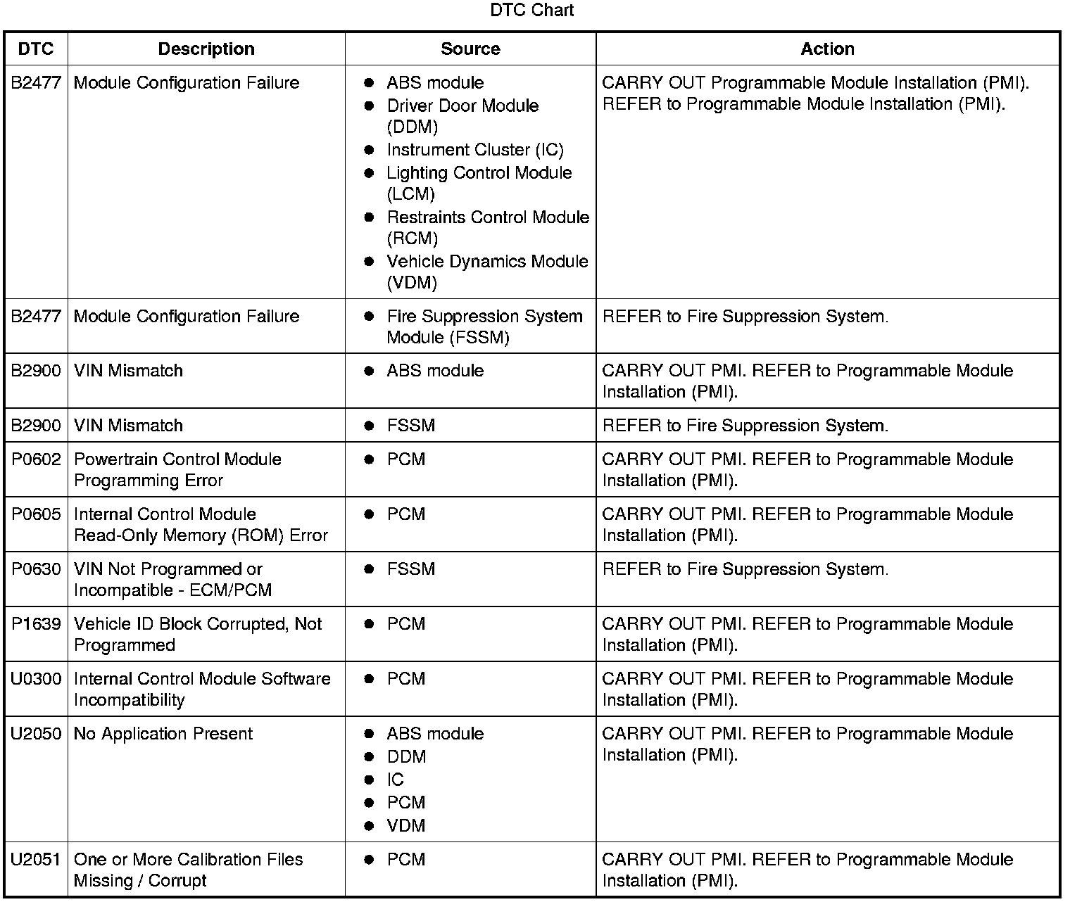 B2477-B2900 / P0602-P1639 / U0300-U2051: