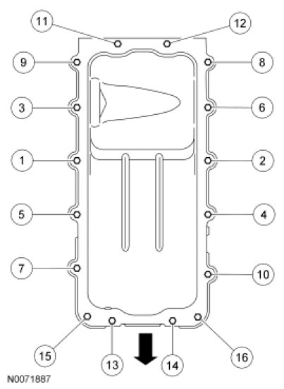 Tighten the 16 bolts in 2 stages, in the sequence shown.