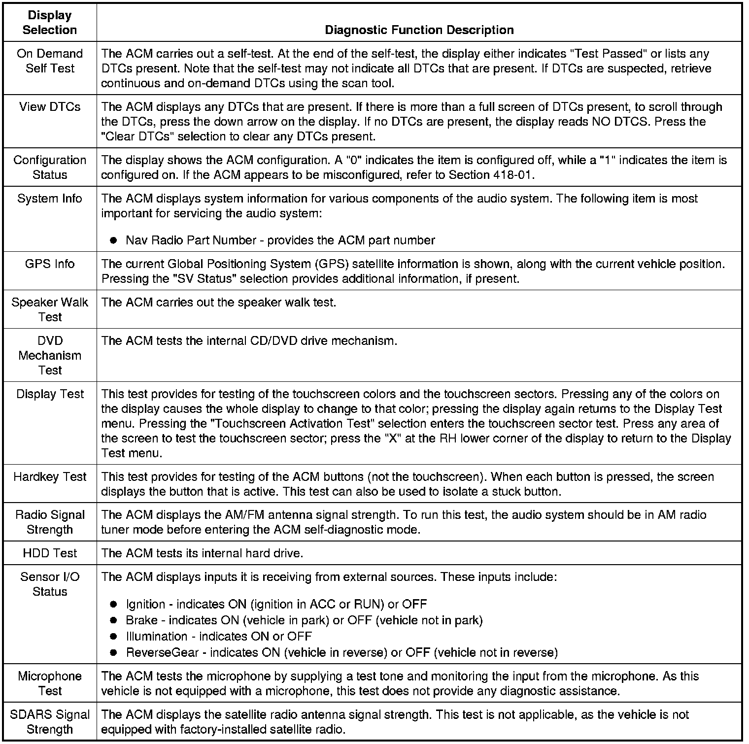 Audio Control Module (ACM) Self-Diagnostic Mode