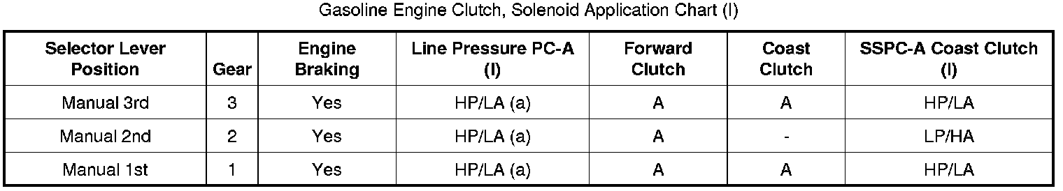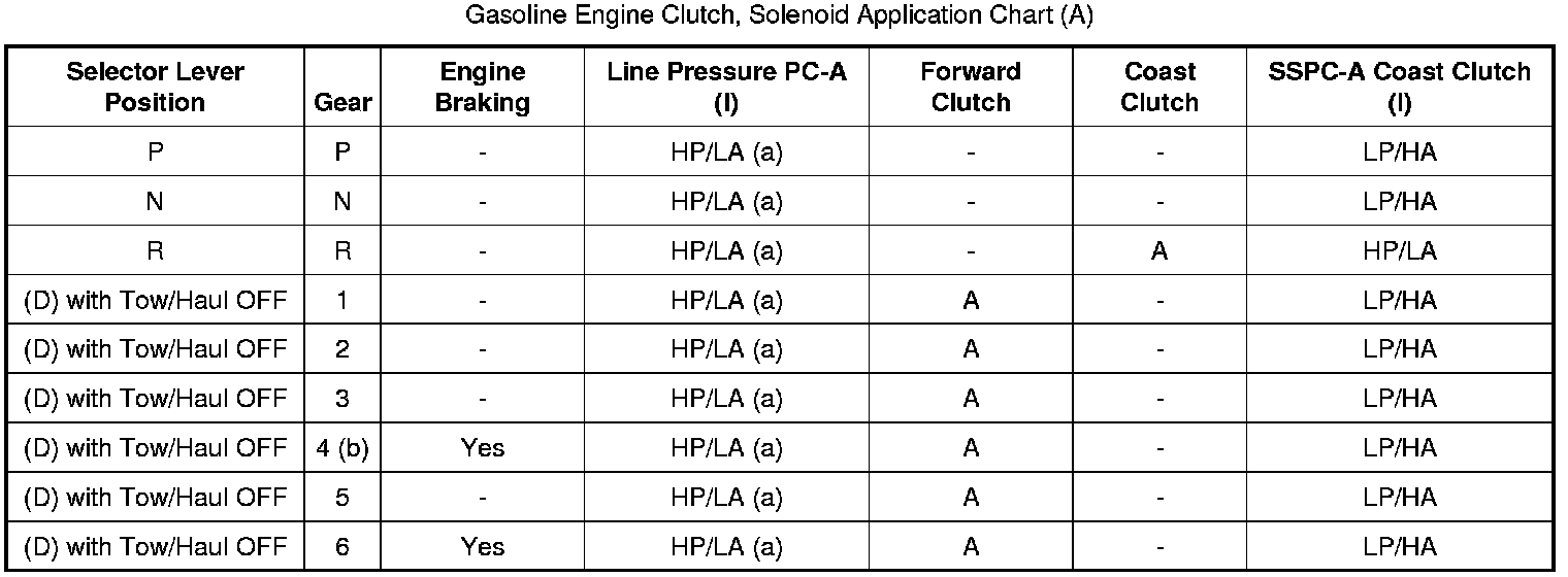 Gasoline Engine Clutch, Solenoid Application Chart (A):