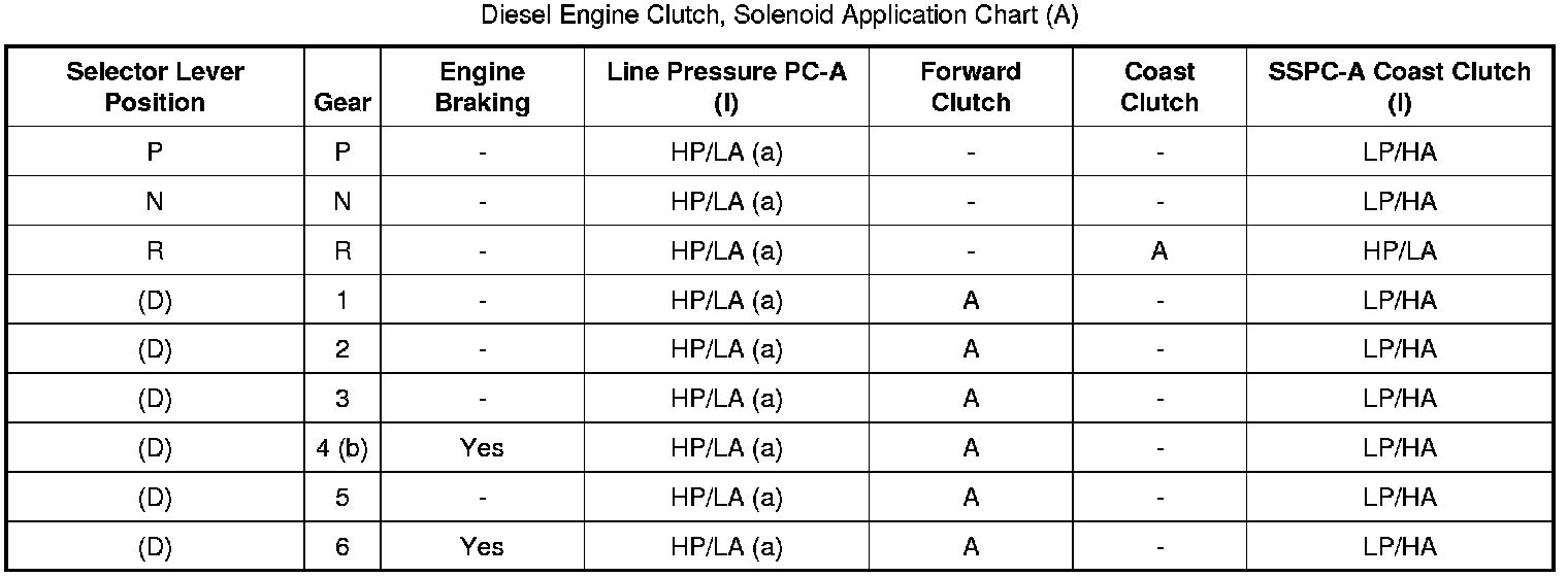 Diesel Engine Clutch, Solenoid Application Chart (A):