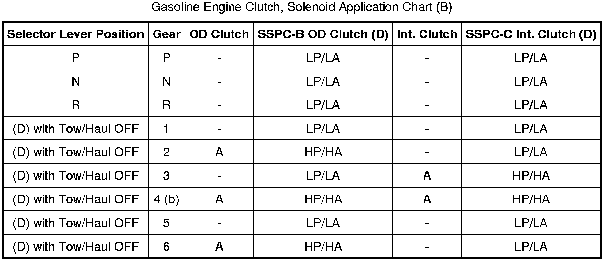 Gasoline Engine Clutch, Solenoid Application Chart (B):