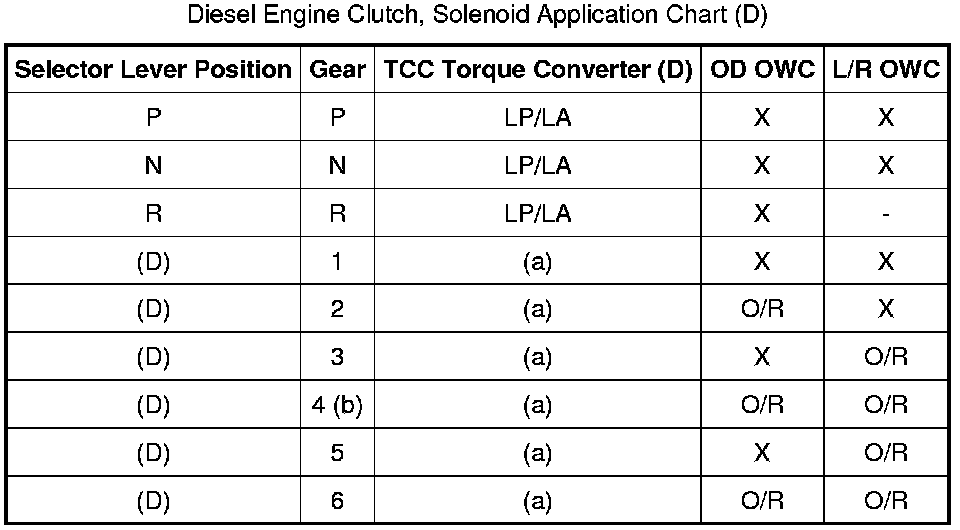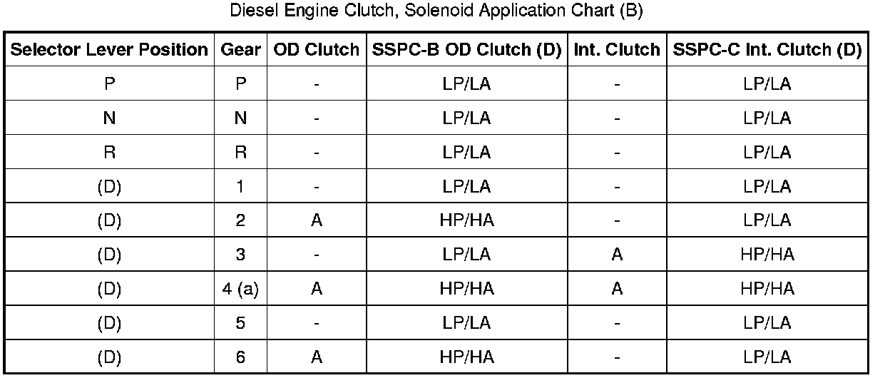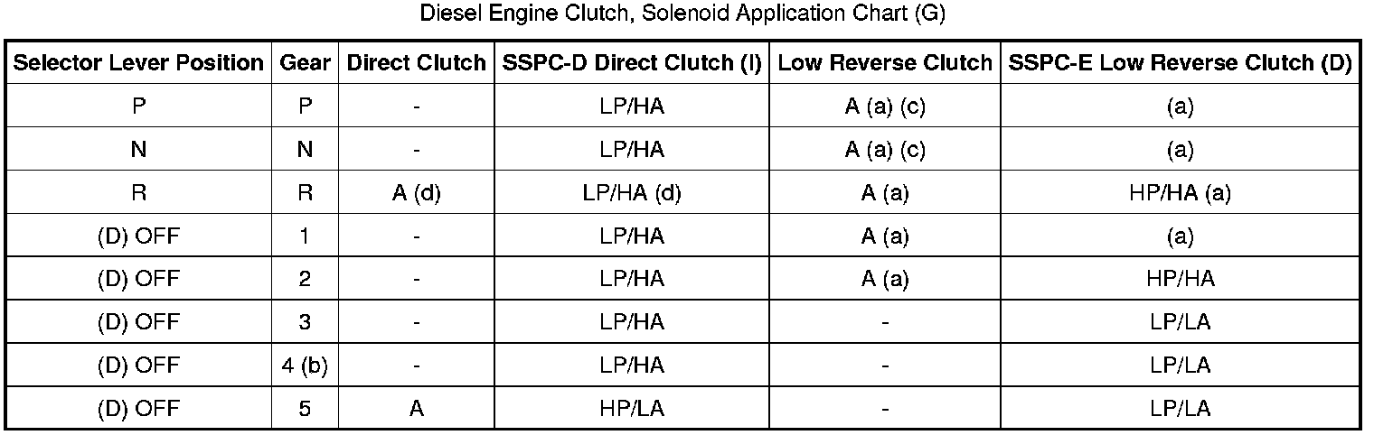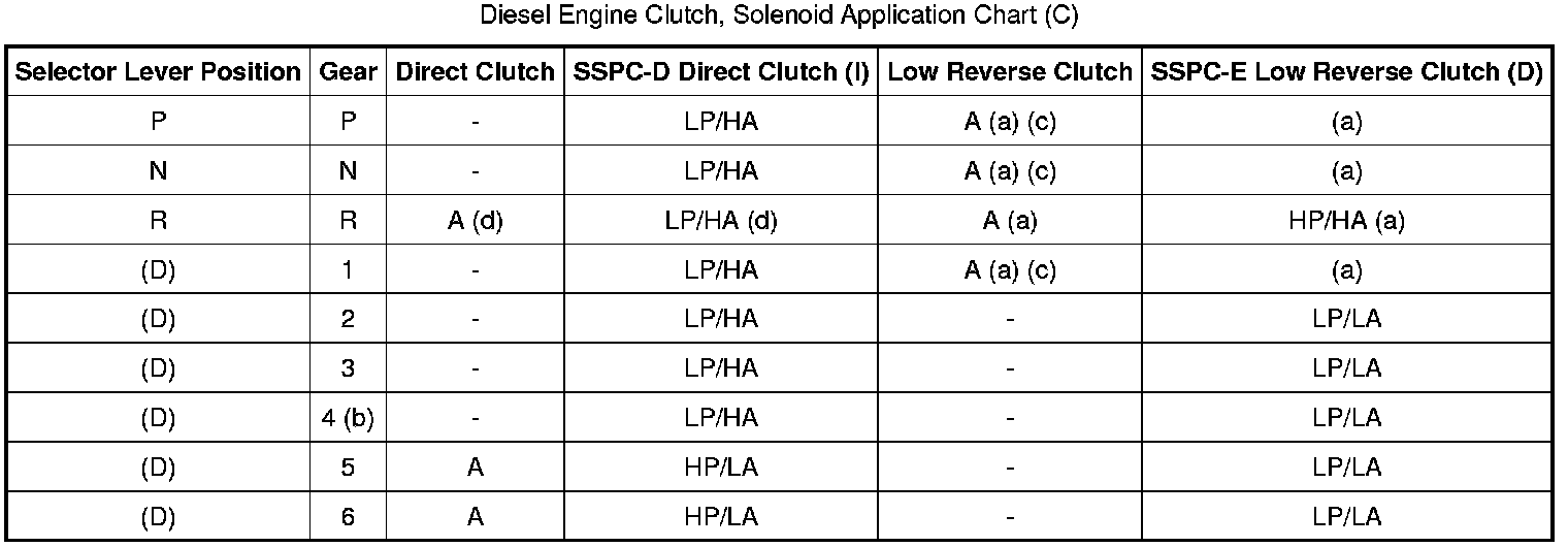 Diesel Engine Clutch, Solenoid Application Chart (D):
